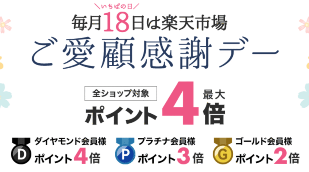また、「ご愛顧感謝デー」で毎月18日は追加ポイント最大4倍。