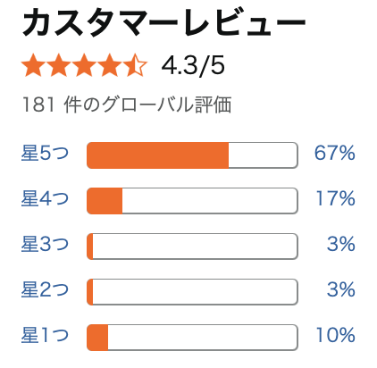 星5つの評価が一番多く、一方で星1つの評価もそれなり。